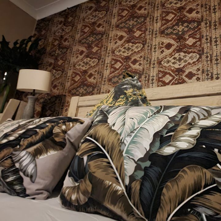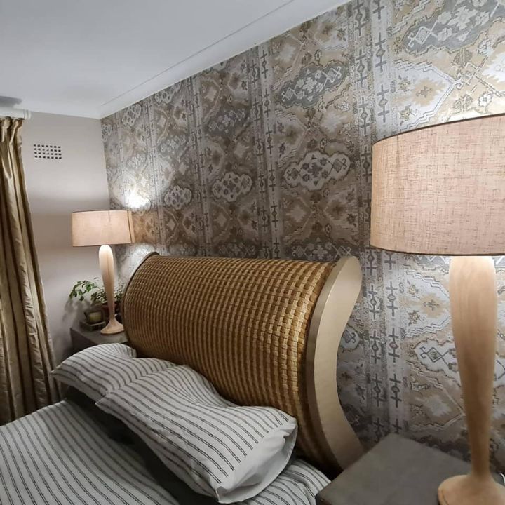This collection includes a sophisticated headboard, sleek side tables, charming wallpaper, refined lamps, and beautifully coordinated scatter cushions, all thoughtfully selected to work together seamlessly.